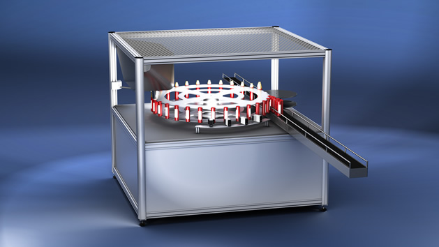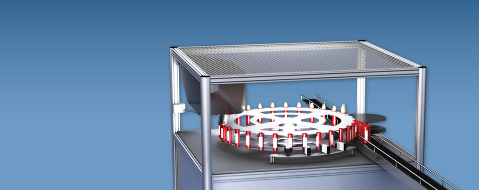 Bevor Flaschen, Dosen oder sonstige zylindrische Verpackungen mit Etiketten, Kappen, Verschlüssen oder Deckeln versehen werden, müssen sie oft im Produktionsprozess ausgerichtet werden – damit zum Beispiel das Etikett richtig aufgeklebt wird oder Kappe und Label in der Richtung aufeinander abgestimmt sind. Um die Verpackungen exakt auszurichten, werden Erkennungsmerkmale definiert und per Kamera abgefragt. Um hier schnellstmögliche Abläufe sicherzustellen, kommen Kameras mit bis zu 350 Frames/sec. zum Einsatz. Die jeweilige Auswertung des erfassten Merkmals liegt im Bereich von einer Millisekunde! Das System arbeitet extrem schnell und zuverlässig – auch bei schlechter Merkmalausprägung zum Beispiel durch Farb- oder Helligkeitsschwankungen.
