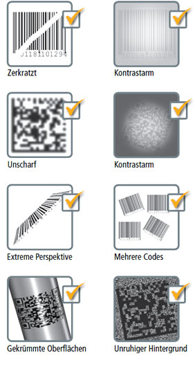 Die hohe Leistungsfähigkeit des Systems zeigt sich vor allem bei Ident-Codes, die zum Beispiel ausgewaschen, schlecht gedruckt, zerkratzt, unscharf, verblasst, kontrastarm etc. sind.